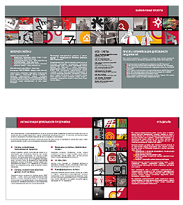 Развороты. | Буклет выдержан в корпоративном стиле компании. Размер буклета 22х23 см | Буклет на выставке "Управление предприятием 2003" | |