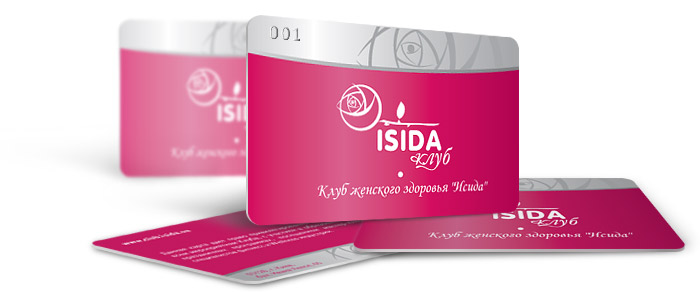 Дизайн клубной карты для Клуба женского здоровья "ИСИДА"Каждая женщина при вступлении в Клуб женского здоровья ИСИДА получает клубную карту. Данная карта дает право привилегированного доступа ко всем мероприятиям Клуба, с участием в образовательных и праздничных программах, посещением мастер-классов специалистов фитнесс и Wellness индустрии.