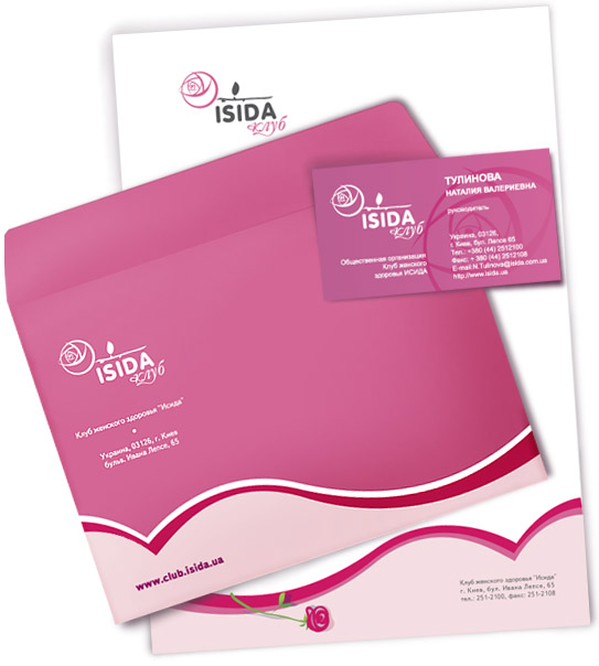 Фирменный стиль "Клуба женского здоровья ИСИДА"Компанией был разработан фирменный стиль для "Клуба женского здоровья ИСИДА". Основным фирменным цветом для клуба одногласно был выбран малиновый, цвет фуксии.