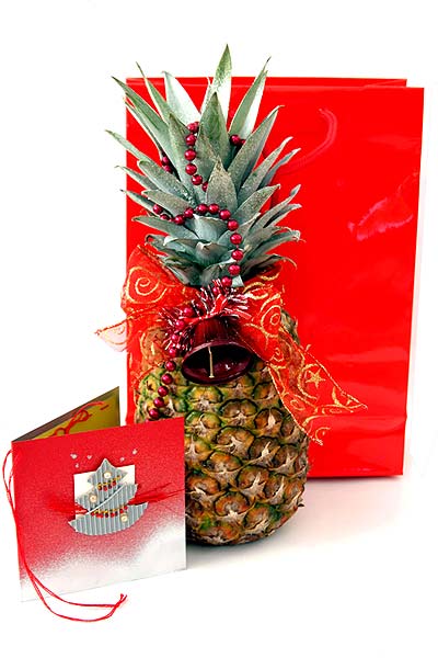 Поздравительный набор для клиентов компанииКлиенты компании в преддверии нового 2006 года получили в подарок вкусные сюрпризы в виде замаскировнных под новогоднюю елку ананасов и открыток ручной работы. Ананасы и открытки наряжались и делались собственными руками и с большой любовью.