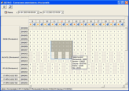 Для некоторых аналитических запросов обычная таблица результатов была заменена более удобным компонентом, который представляет данные в более наглядном виде Так, например, календарь загрузки отчетов очень наглядно отражает состояние загрузки. Создается четкое картина, в которой легко разобраться и выявить ошибки. Календарь позволяет получить агрегированные данные по загруженным в систему показателям счетчиков и данные по телефонным соединениям за любой период времени. Для этого всего лишь необходимо выделить интересующий период на календаре. Приложение обладает настраиваемой системой формирования различных отчетов, которые могут быть представлены как в виде текстовых файлов, так и в виде широко используемого pdf формата.