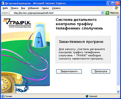 ИнтерфейсИнтерфейс любой программы это путь к сердцу пользователя, поэтому, при разработке системы, проектированию пользовательского интерфейса уделялось особое внимание. Пользователю должно быть удобно и просто работать системой, он должен быстро находить интересующую его информацию и эта информация должна легко восприниматься. Для системы «Трафик» был разработан интерфейс при помощи которого даже человек, имеющий начальные навыки работы с компьютером, может легко разобраться и очень быстро начать работать с системой. Одним из преимуществ системы является то, что она не требует инсталяции. Для запуска приложения достаточно нажать кнопку «Завантажити». При этом система автоматически добавит себя в меню программ на панели «Пуск» и на десктоп.